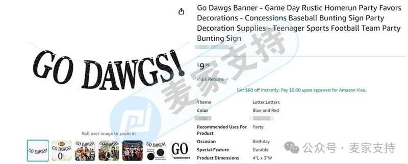 本次维权的商标包括图形以及文字商标,例如跨境卖家所熟知的牛头犬,DAWGS,字母G和牛头犬等形象也在本次案件中,这些图案及文字也经常出现在服装,鞋帽等产品中,有些看似普通,但早已成为某些大牌旗下所注册的商标。麦家支持提醒跨境卖家在选品过程中,在发掘市场潜力的同时,务必警惕潜在的侵权风险。