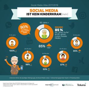 50岁以上网民中,85%的人使用社交媒体。