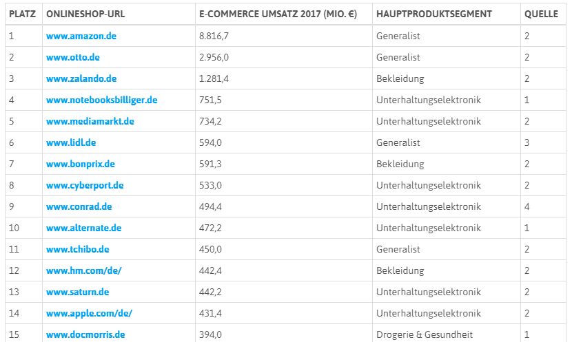 82%的德国网民在线购物,2017年德国排名前1000名的在线商店创造了428亿欧元的营业额。据2018年数据,营业额排名第一的美企Amazon,以88亿欧元秒杀排在它之后的9个德国本土网店营业额总和。