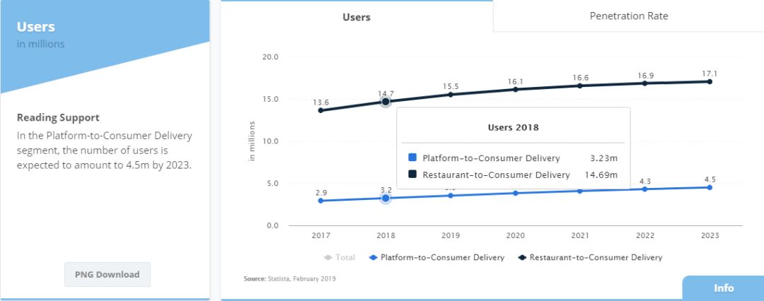 2018年有323万人次通过在线订餐平台定外卖,盈利2.6亿欧元;但却有1469万人次直接通过餐馆在线订餐,盈利18亿欧元。相对于国内饿了么,美团外卖,德国送餐外卖平台的实力和覆盖率简直是不值一提,连传统餐馆的简陋订餐网页都干不过。