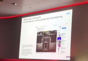 下图来自德国某互联网会议,德国人做的关于中国在线视频产业的报告。图中正在介绍Bilibili的弹幕。