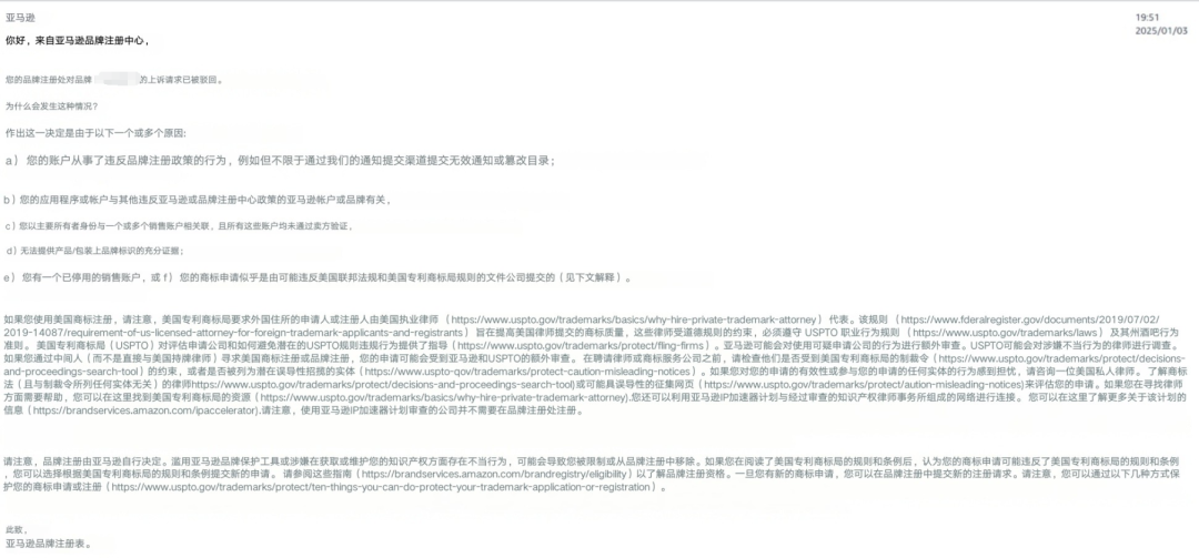 结果发现备案不了,显示品牌滥用,于是交由我们文人跨境团队处理。