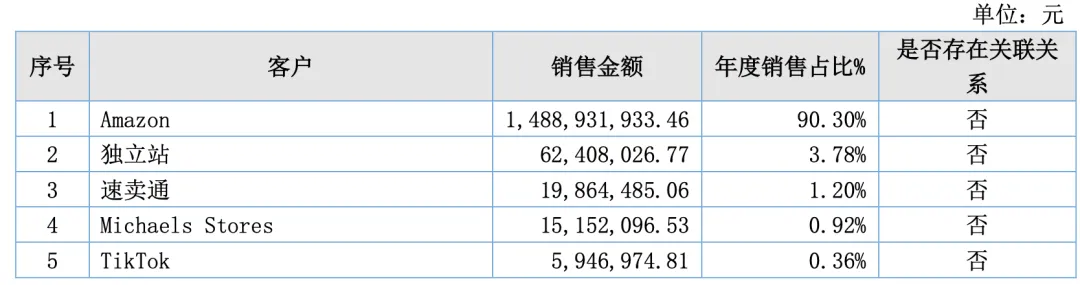 2024年,亚马逊在公司收入占比中高达90%,其次为独立站、速卖通、Michaels Stores和TikTok,但比例合计不到10%。