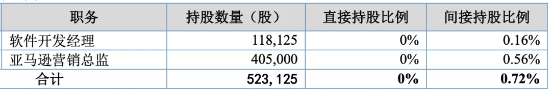 面对重点人才,千岸科技推出了股权激励计划,2022年开始,股权激励已进行了3轮。其中的核心岗位,软件开发经理及亚马逊营销总监,合计持股0.72%。