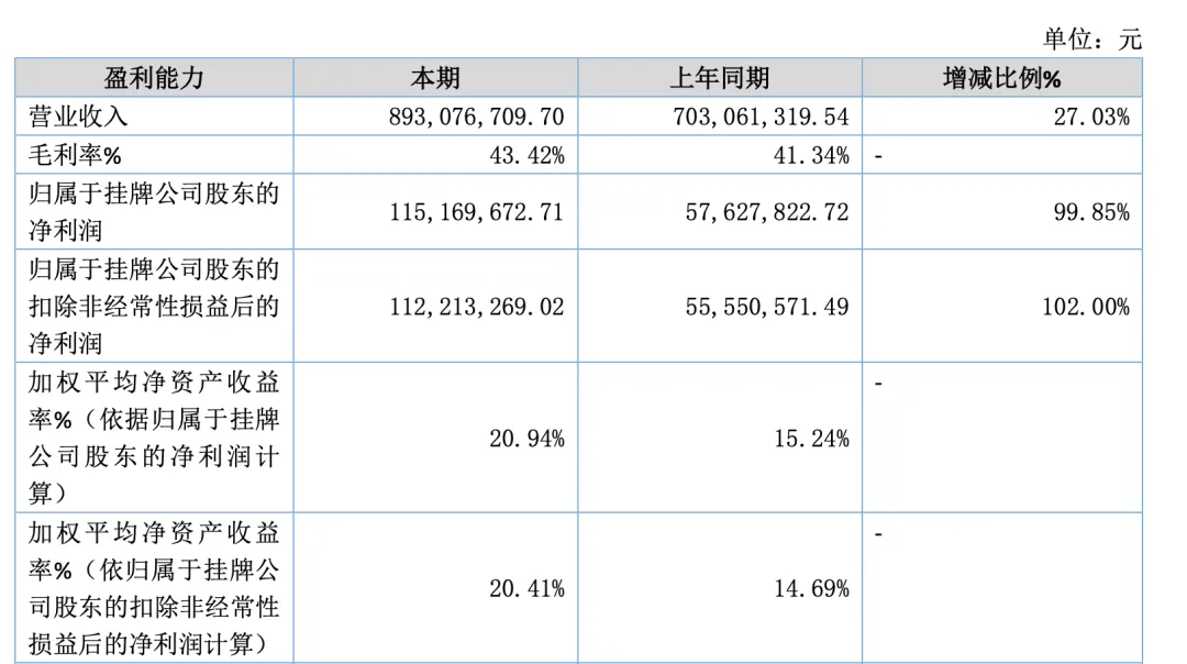 2025年上半年,千岸科技营业收入为8.94亿元,同比增长27.03%,归属于挂牌公司股东的扣除非经常性损益后的净利润为1.12亿元,同比增长102.00%。