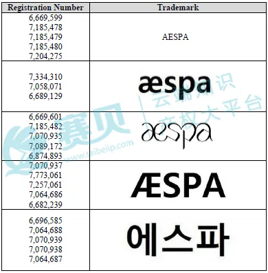 此次维权的 “SM Trademarks” 包含两大核心类别:艺人及团体商标包括 aespa、Girls On Top、Girls' Generation、GISELLE、KWANGYA、MAX CHANGMIN、NCT、NINGNING、PINKBLOOD、RISE&REALIZE RIIZE、SHINee、U-KNOW YUNHO 等,涵盖团体名称、成员艺名、相关概念名称等;