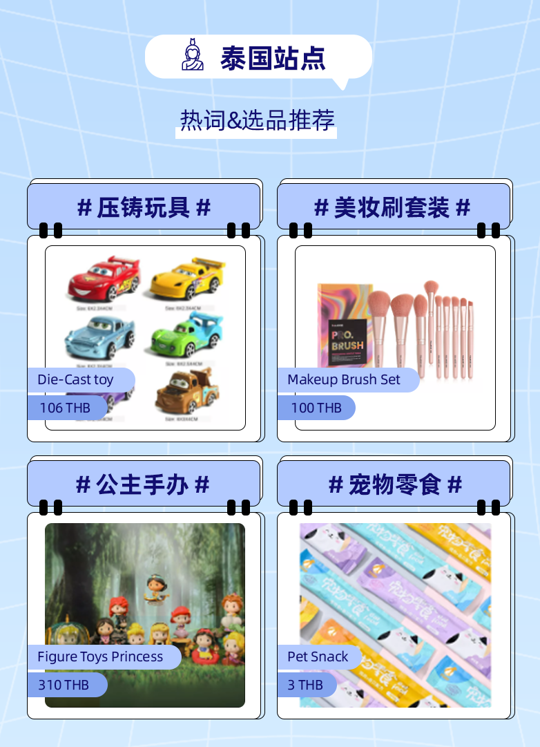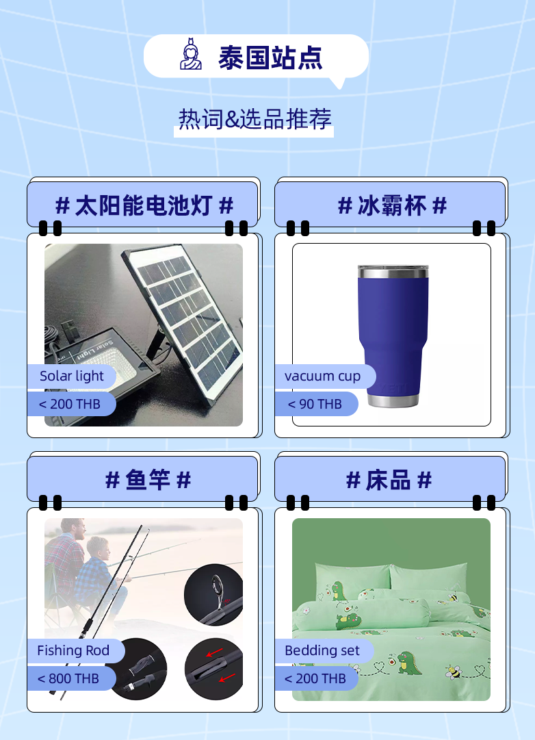 今年来,泰国站点网购消费活力恢复,主流消费呈两大趋势:出行游玩以及精致居家。出行游玩,在跨境旅游逐步开放后箱包、服配、美妆等出行需求商品出现阶梯式增长,户外运动、露营等优势类目也在持续发力,且呈现品牌化垂直化经营;