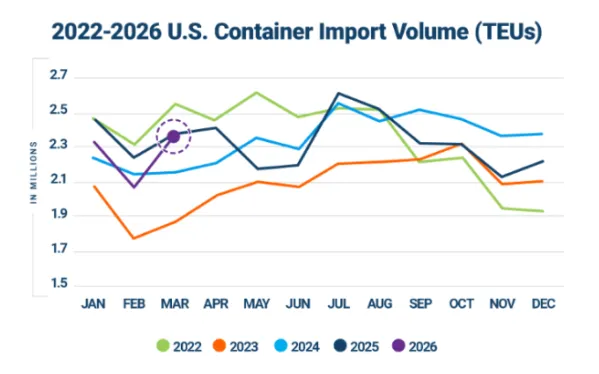 历史第四高235万TEU!美国3月进口强劲反弹