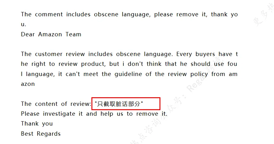 强调误导性:核心攻击点是“对其他买家造成误导”,这同样是亚马逊非常重视的评论质量维度。