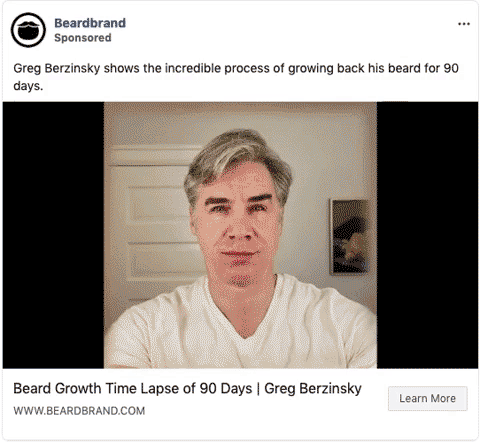Beardbrand非常出色地展示了他们团队的个性以及像Greg Berzinsky这样的大品牌。在这个视频广告中,他们使用延时照片来显示胡须在90天内可以长出多长时间。