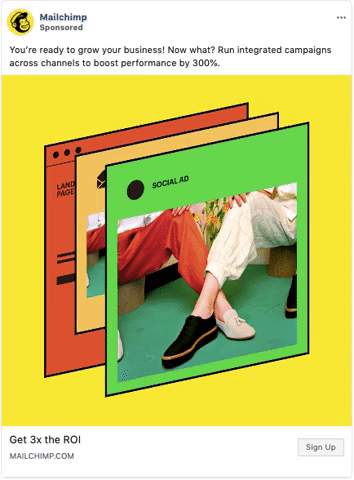 Mailchimp Facebook广告以色块为特色。