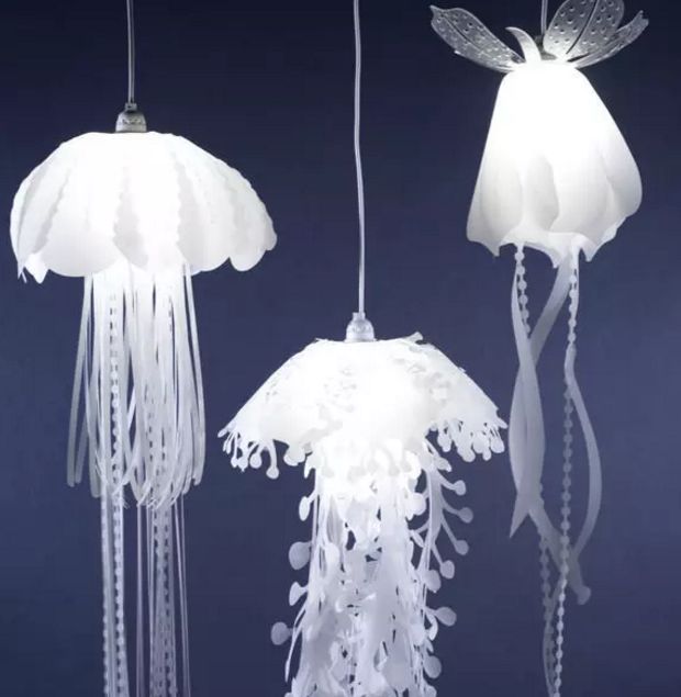 女性特有的柔美空灵的设计视角,柔和飘逸的乳白色主体加上底部形态各异的长长流苏,如游弋着的水母般飘逸灵动,让人仿佛置身于海底世界。