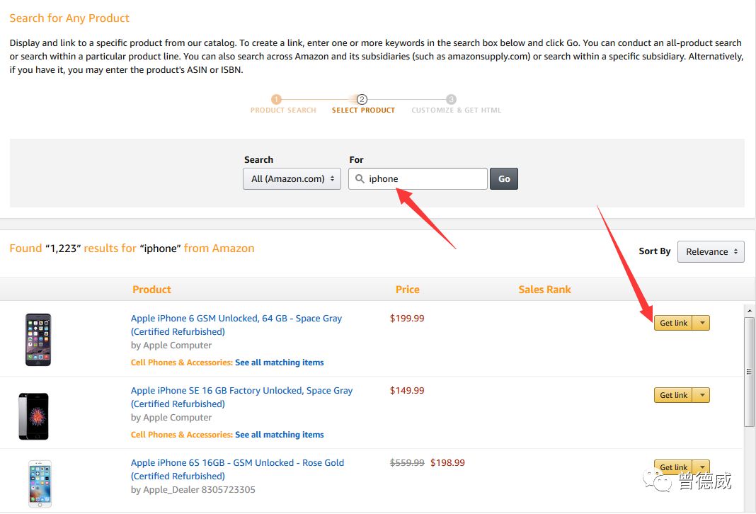 你可以使用关键词搜索你想要卖的产品,搜索结果中会有一堆一堆的可选亚马逊卖家代销产品,接着,点击 Get Link 就可以获得代理权了。