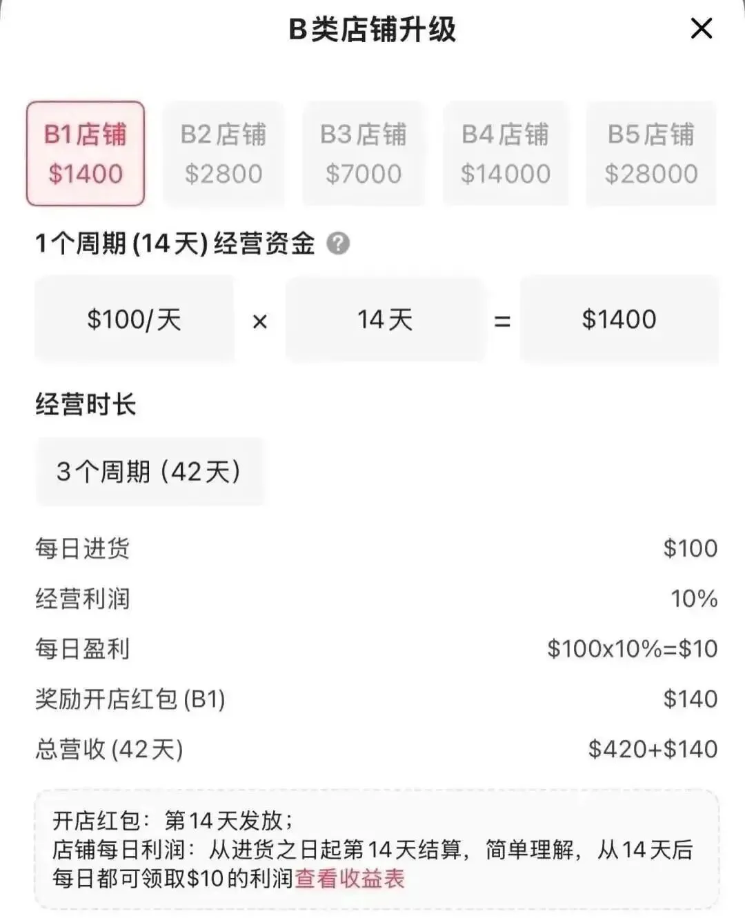 而在这些套路当中,最吸引投资人的当属其“躺赚”承诺:“14天收益10%”,声称年化收益能超过240%(远超行业5%-15%的正常利润率),吸引用户投入300至20000美元不等的进货资金。