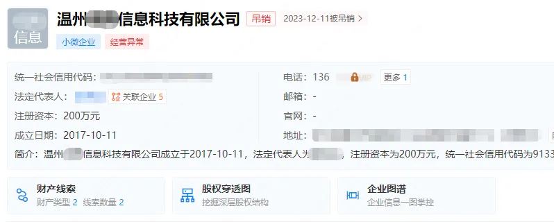 据跨境知道搜索发现,Yulily对外宣传的运营主体“温州**信息科技有限公司”的登记状态已在2023年“吊销”,参保人数也不再显示。海南、广州等地关联公司要么被列入经营异常,要么已注销。