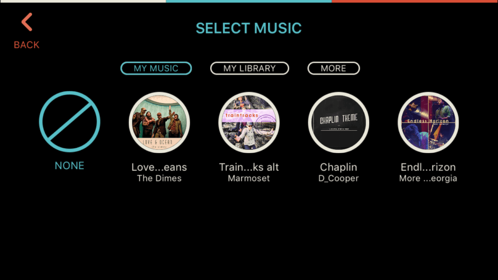 您可以从音乐库中添加您选择的音乐,并且可以根据需要与应用程序社区共享视频。