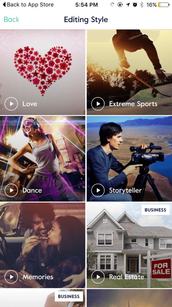 选择图像或视频后,您将选择“编辑样式”,其中包括房地产,回忆,讲故事的人,舞蹈等选项。
