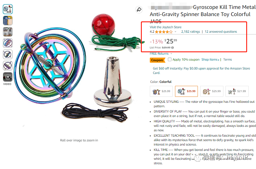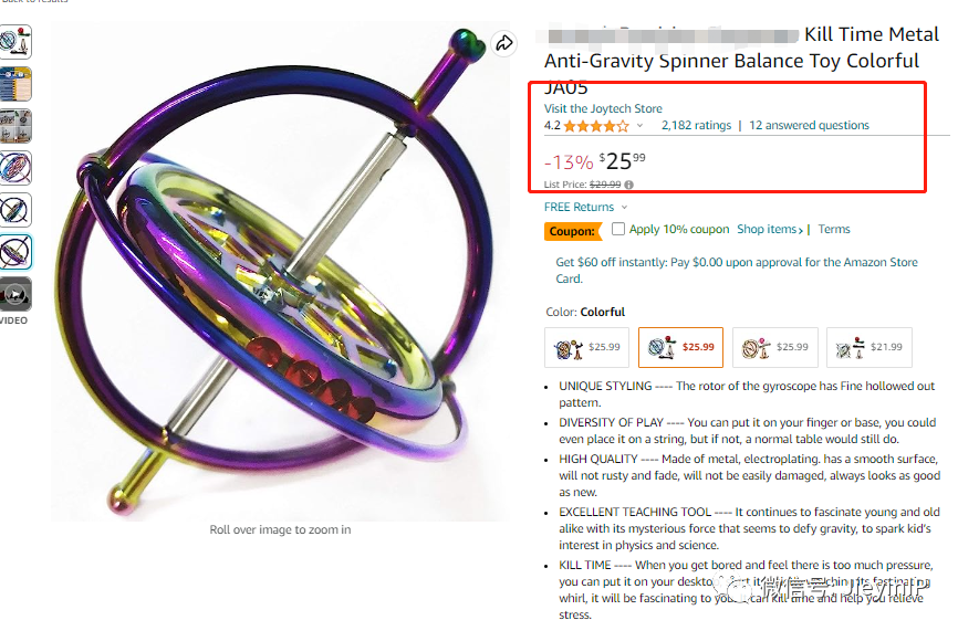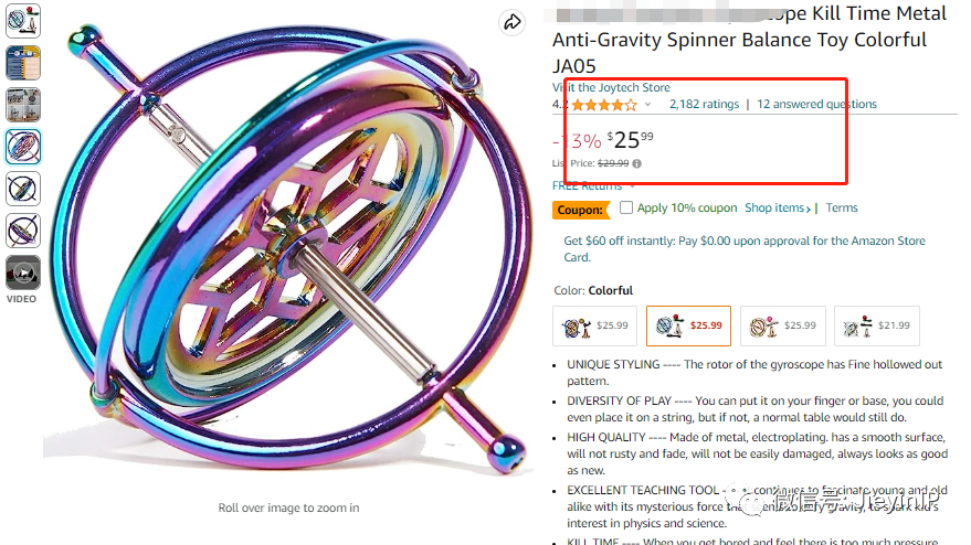 今天分享的这款陀螺仪,它是亚马逊美国站的热榜销量第一,售价25.99,评论2182.