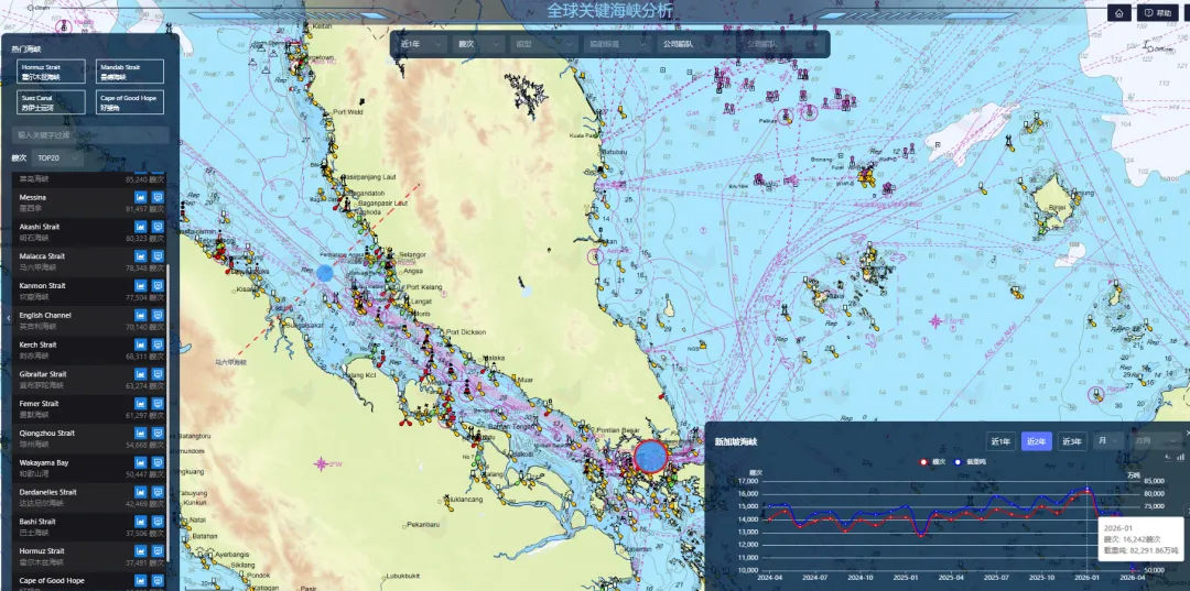 数据显示,2025年该海峡年通行船舶首次突破10万艘次,同比增长8.72%,其中每天约有2320万桶原油经由该海峡运输,战略地位不亚于霍尔木兹海峡、苏伊士运河和巴拿马运河。