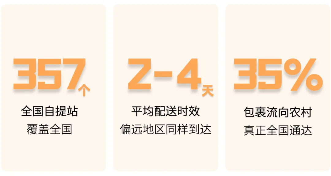 全国布局357个自提点,超80%由第三方合作运营,轻资产快速下沉;