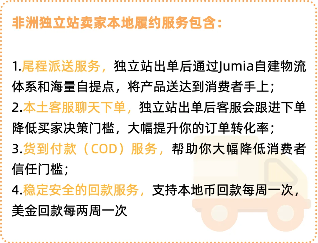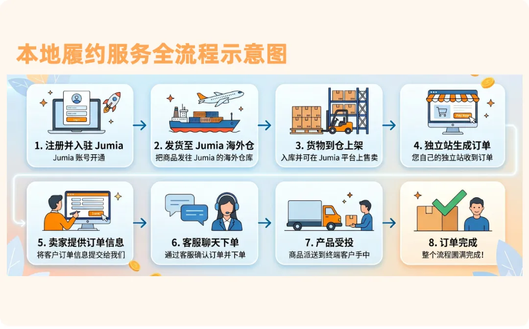 即日起,Jumia全面对外开放本地履约服务,不只服务于站内海外仓卖家,现在符合要求的非洲的独立站卖家都可直接享受!