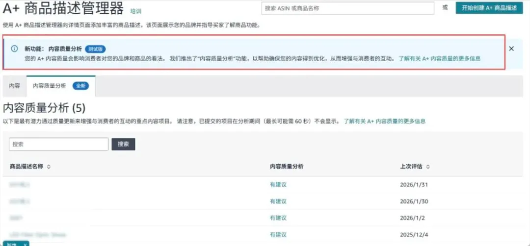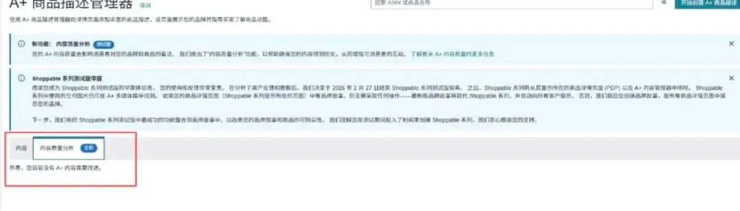 与此同时,卖家后台也悄然上线了 A+ 内容质量分析功能。