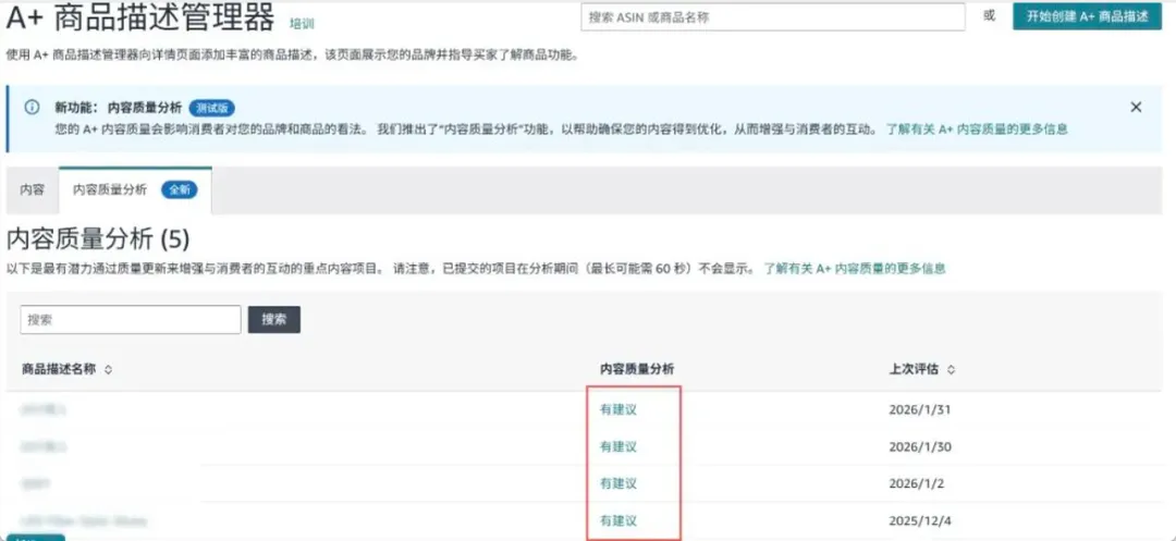该功能会自动扫描卖家上传的 A+ 页面,并基于一套质量评估逻辑给出判断结果。