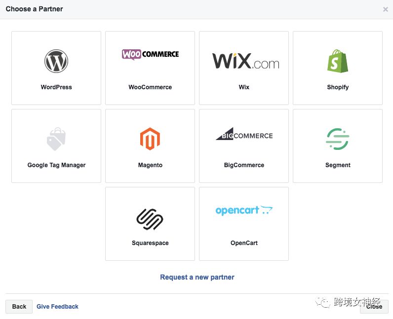 选项1:使用Facebook网站合作伙伴安装你的像素。