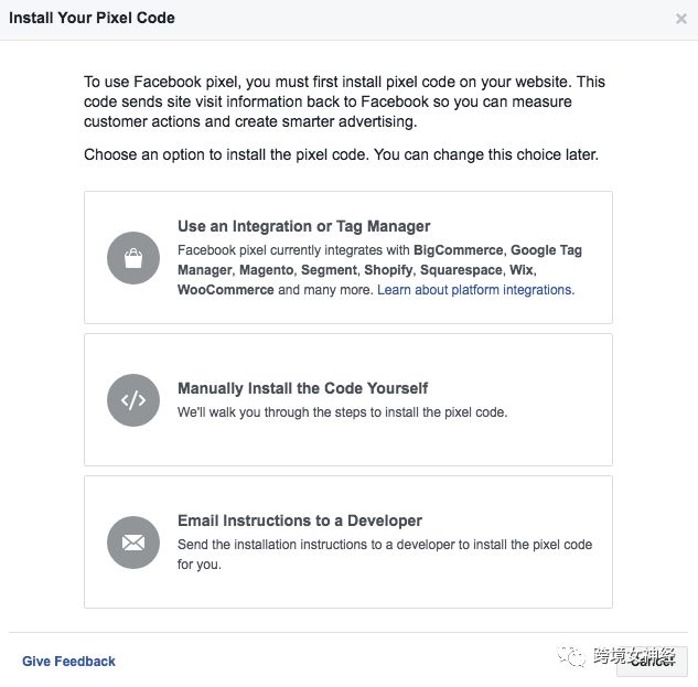 要将Facebook Pixel安装到你的网站,Facebook提供了有三种选择: