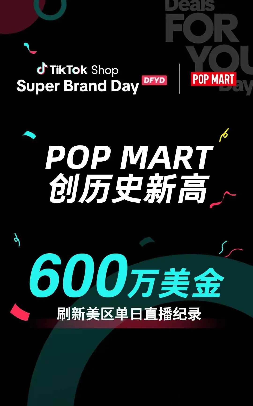 泡泡玛特在TikTok Shop美区年中大促中,单场直播销售额突破600万美元。