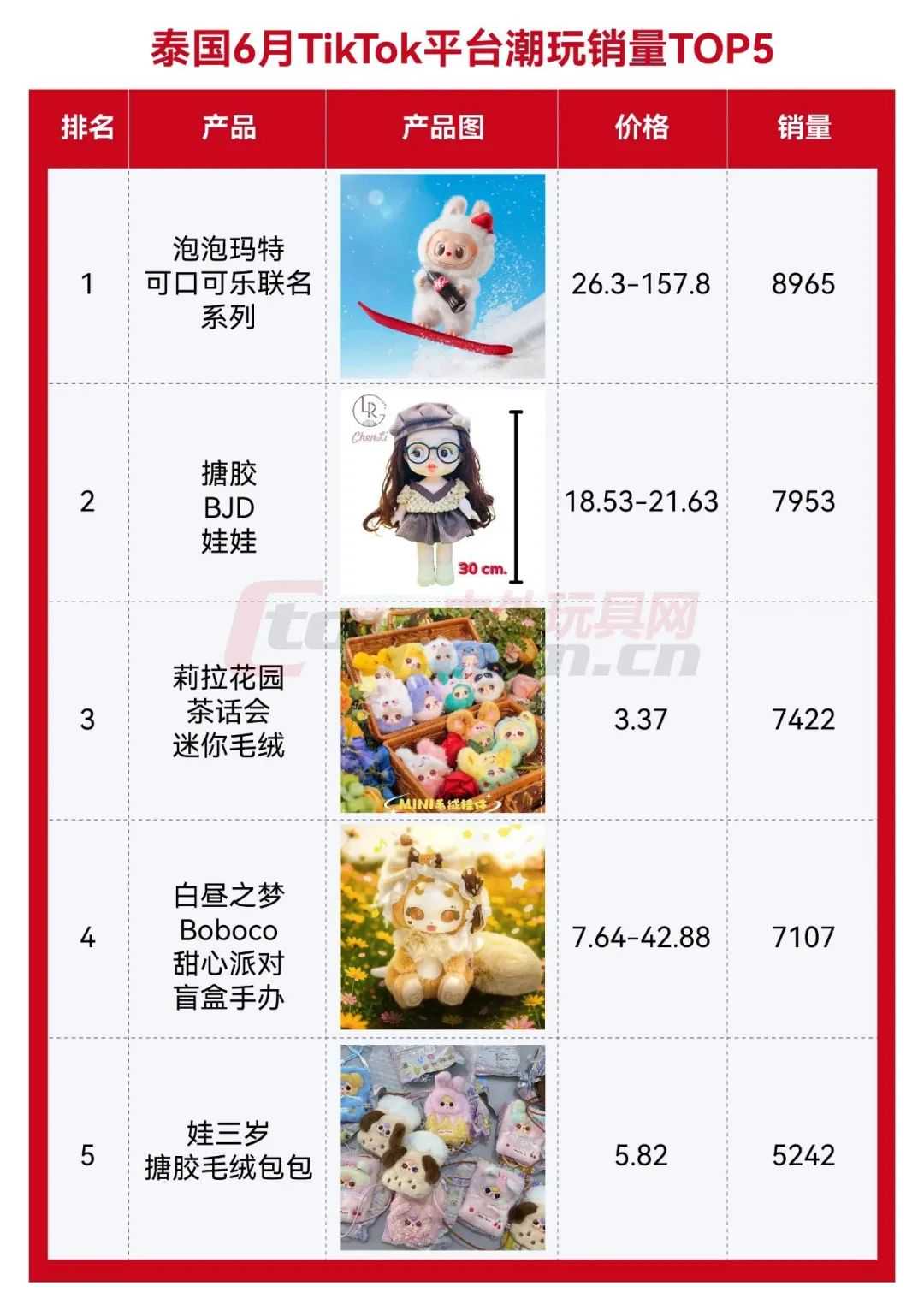 6月TikTok Shop东南亚潮玩销量飙升至监测史峰值,TOP5产品总销量突破6.24万件。