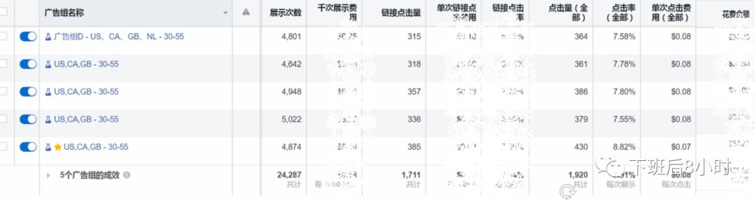 等我们测试出来最优质的一组受众,最受欢迎的素材以及更有鼓动性的文案,标题等,可以加大预算对这些表现最好的测试变量结果,比如就以最优质的受众,最好的素材以及标题,文案等创建一组广告组,广告成效肯定大大提高。