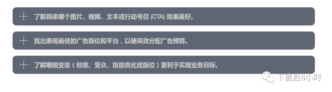 这个变量可以是不同受众,不同素材文案创意,不同广告投放版位以及不同投放优化。