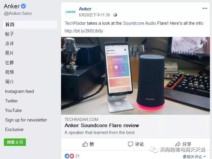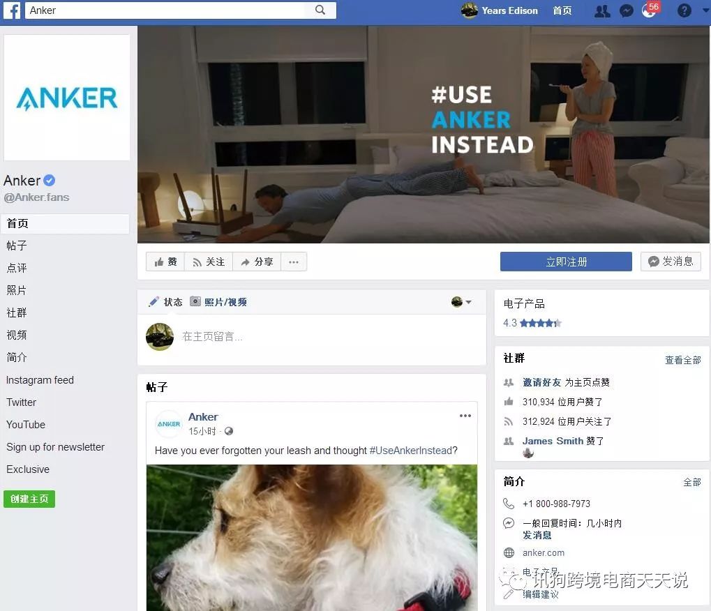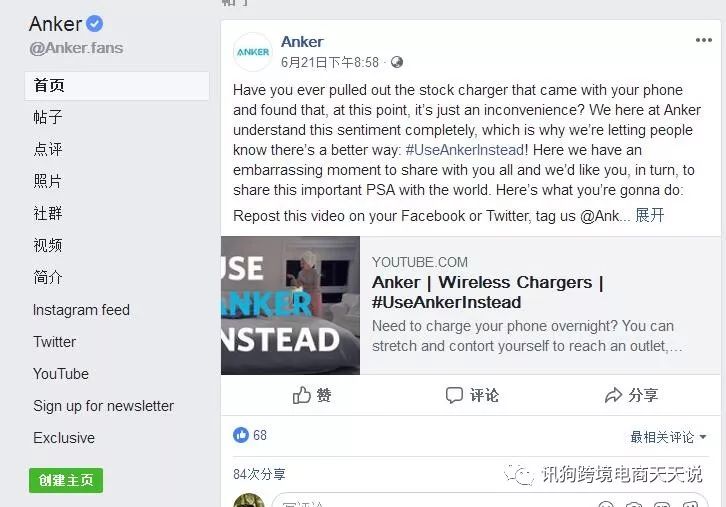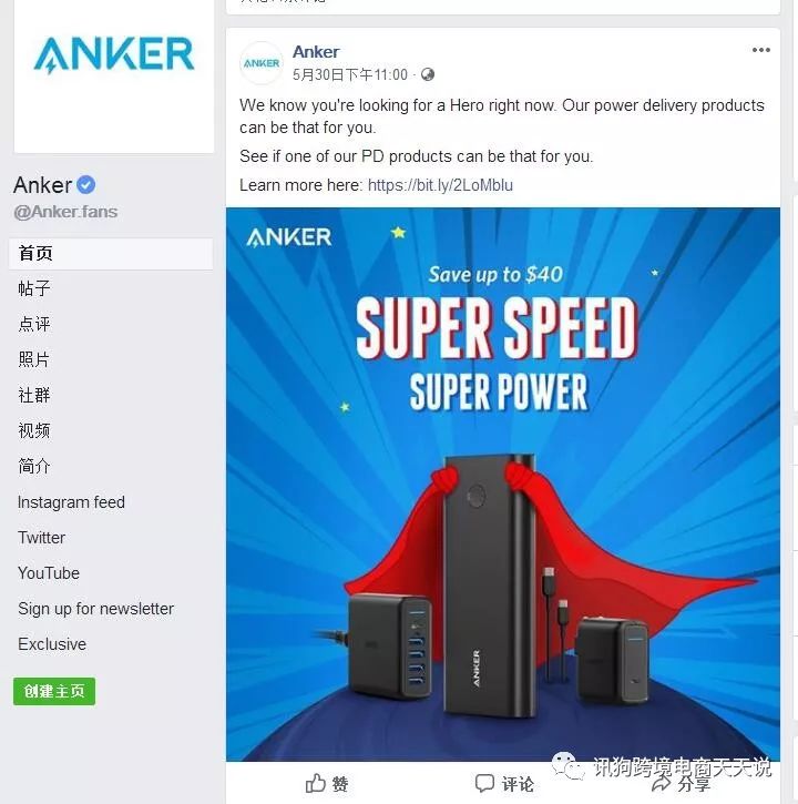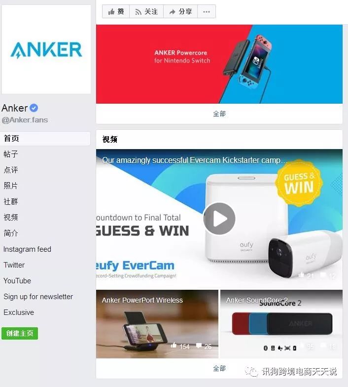 这是Anker的Facebook主页,