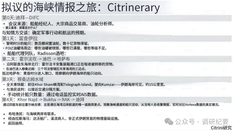 我降落在迪拜,与一些我认识的知情人士以及Citrini Research的联系人交谈,然后驱车前往富查伊拉,在石油码头拍摄素材并收集信息,接着进入阿曼北部的穆桑代姆省,到达哈萨卜,并尝试出海。