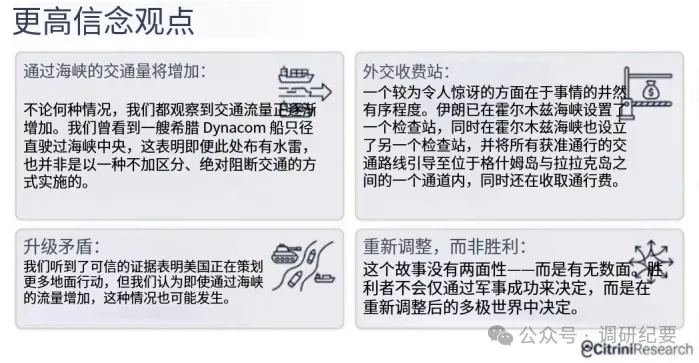 这也让我们觉得,我们极有可能在未来一周左右看到冲突升级,同时海峡交通量增加。海峡的开放或关闭,并不完全取决于冲突是升级还是降级。