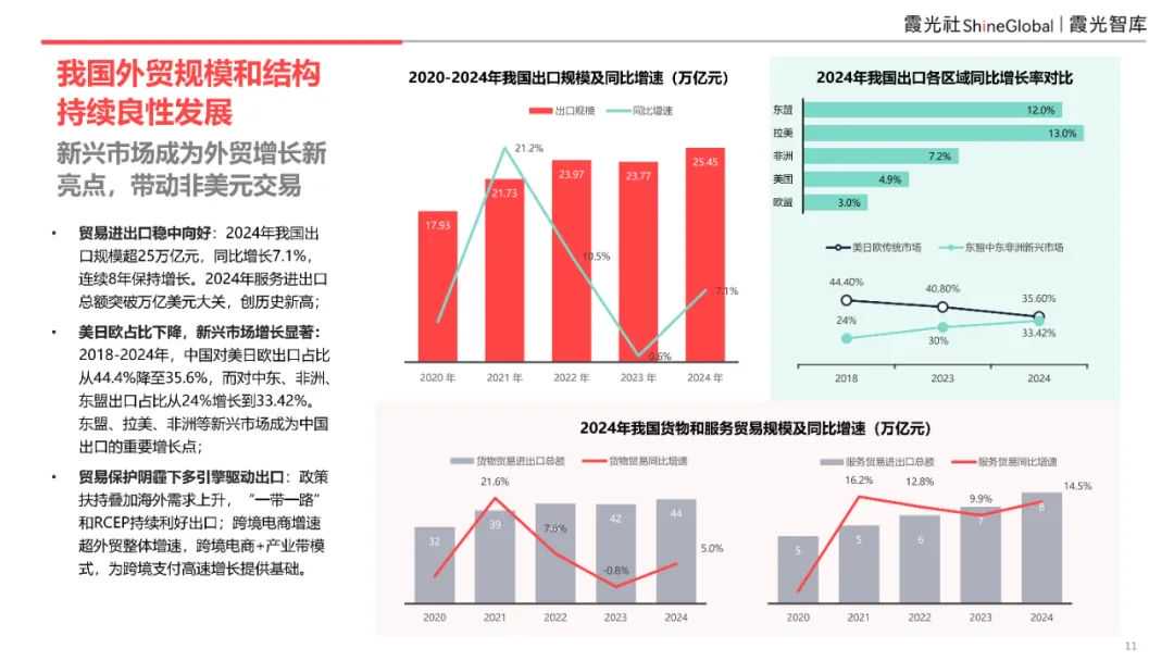 近日,霞光社&霞光智库推出《2025年中国跨境支付十大趋势报告》(以下简称《报告》)。报告基于中国跨境支付背景概况,从市场规模、结构占比全方位描绘跨境支付发展现状,研判了2025中国跨境支付十大趋势,展现跨境支付创新解决方案,引发行业广泛关注。