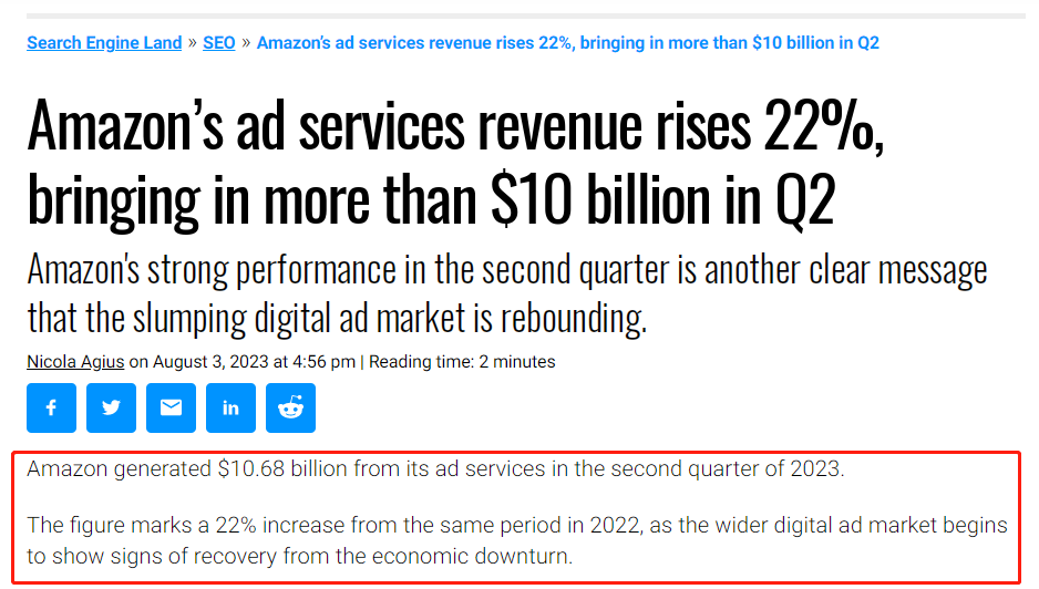 虽说亚马逊并没有在财报中详细的写明广告业务增长来源占比在哪方面。但有业内人士从第三方视角推测,引领22%的增长和107亿营业额,绝大部分可能来自中国卖家。