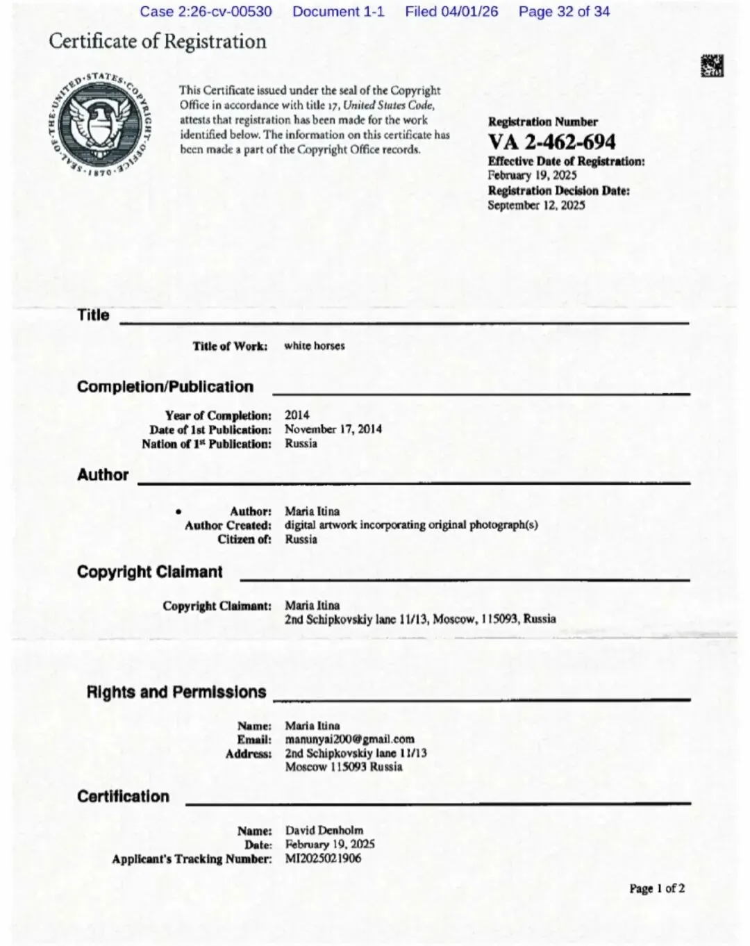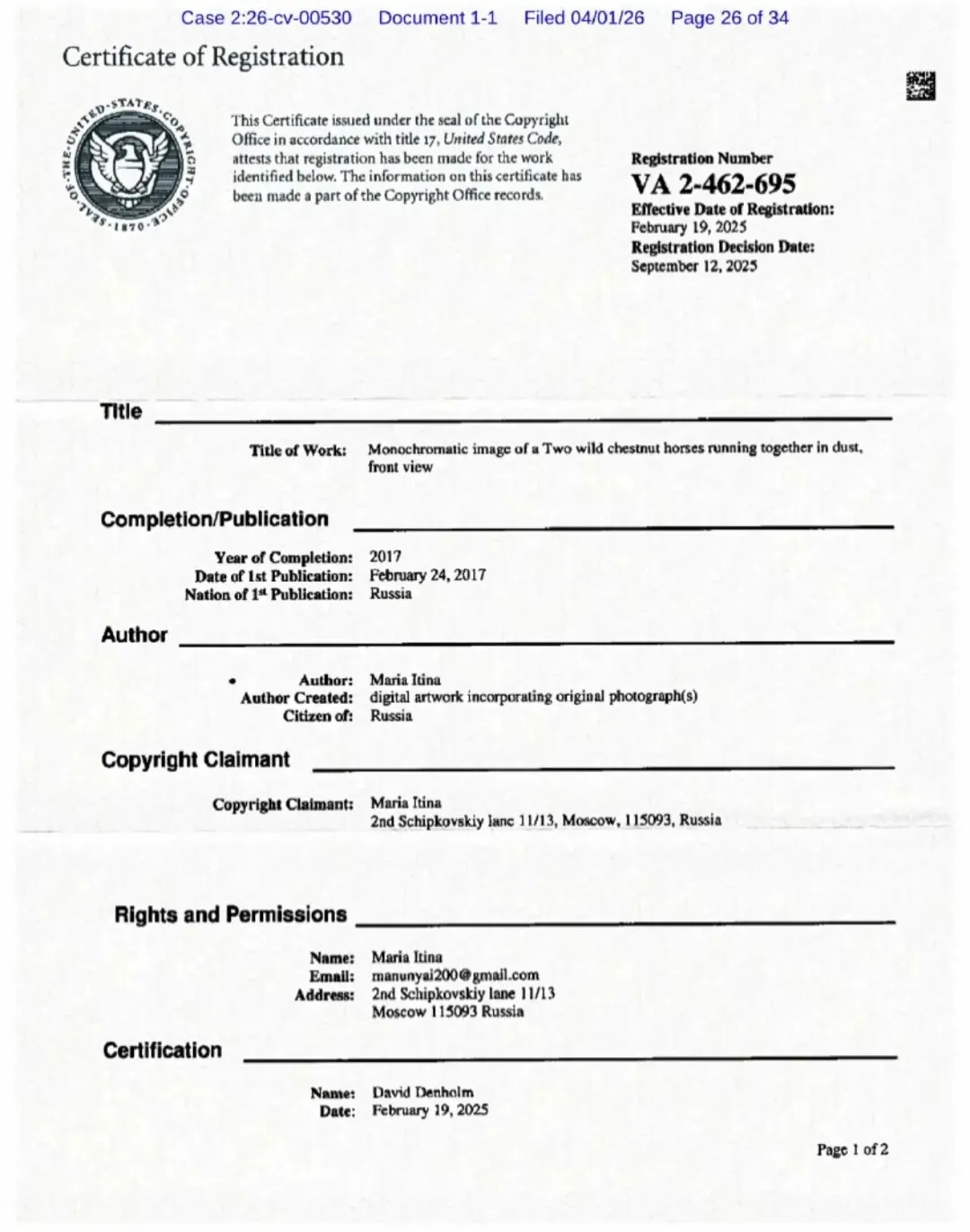 【26-cv-00530】11幅马儿版权维权!跨境卖家速看避雷!