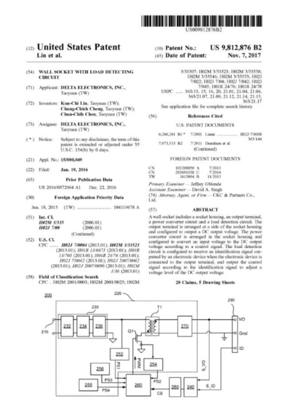 本案涉及发明专利维权,涉案专利编号为US9812876B2: