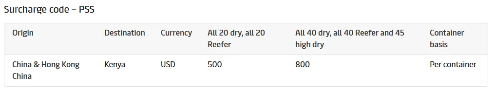 自2026年3月1日起(目的地南非为2026年3月15日起),从远东至肯尼亚、坦桑尼亚、莫桑比克和南非的所有货物征收旺季附加费(PSS),适用于短期合同。