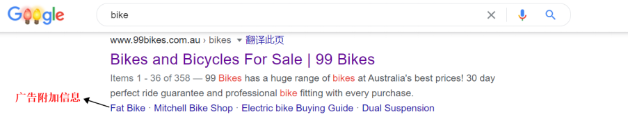 广告附加信息:比如位置信息、网站上的网页链接、电话号码