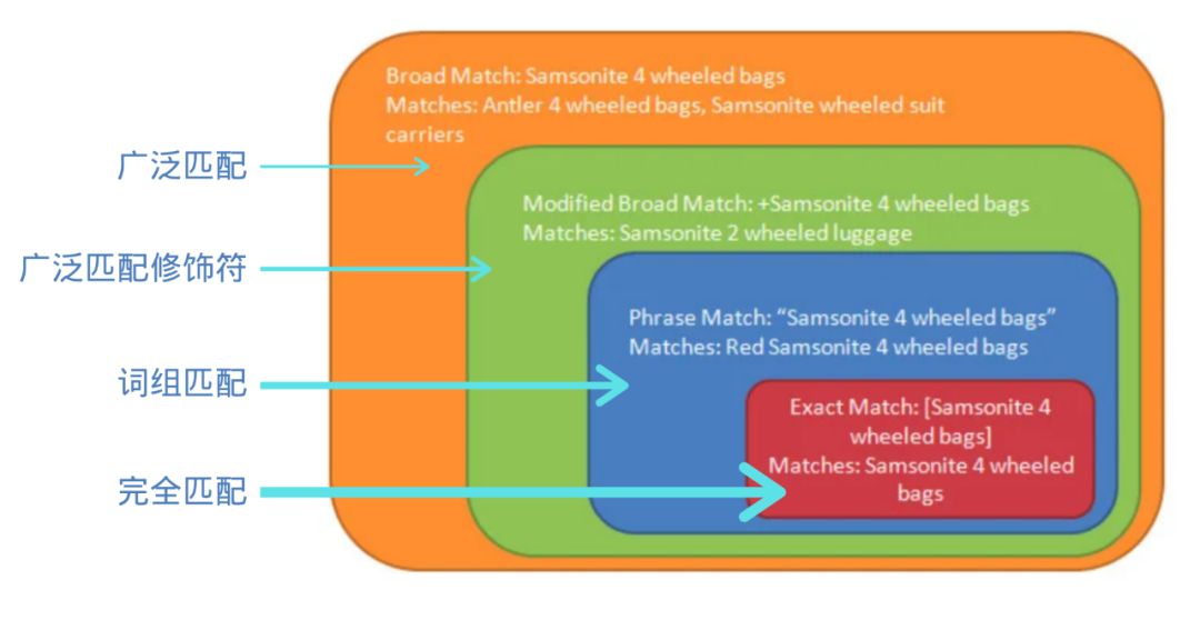 完全匹配:要使用完全匹配,应当用方括号(【 】)括住关键字。你的广告仅在与关键字完全匹配的搜索中展示,但面临着错过潜在客户的风险。