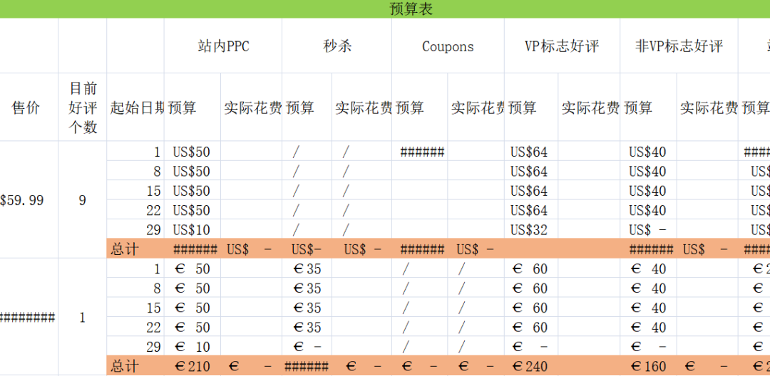 亚马逊重点产品推广步骤及推广预算表