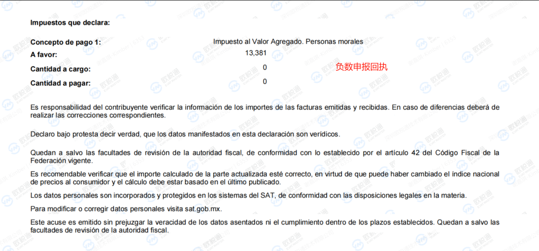 墨西哥RFC申报采用先申报后缴税税务体系,卖家在申报周期内(月度)提交抵扣文件(包括但不限于平台下载的税务发票、前期负数等)后,出现“应纳税额<可抵扣/预缴税额”,从而触发负数申报。