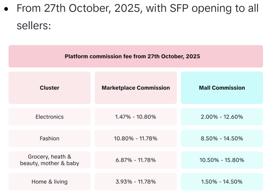 1.取消商城/品牌卖家(Mall Sellers)的SFP(Shipping Fee Program,平台包邮活动)服务费,开放SFP至全体卖家。