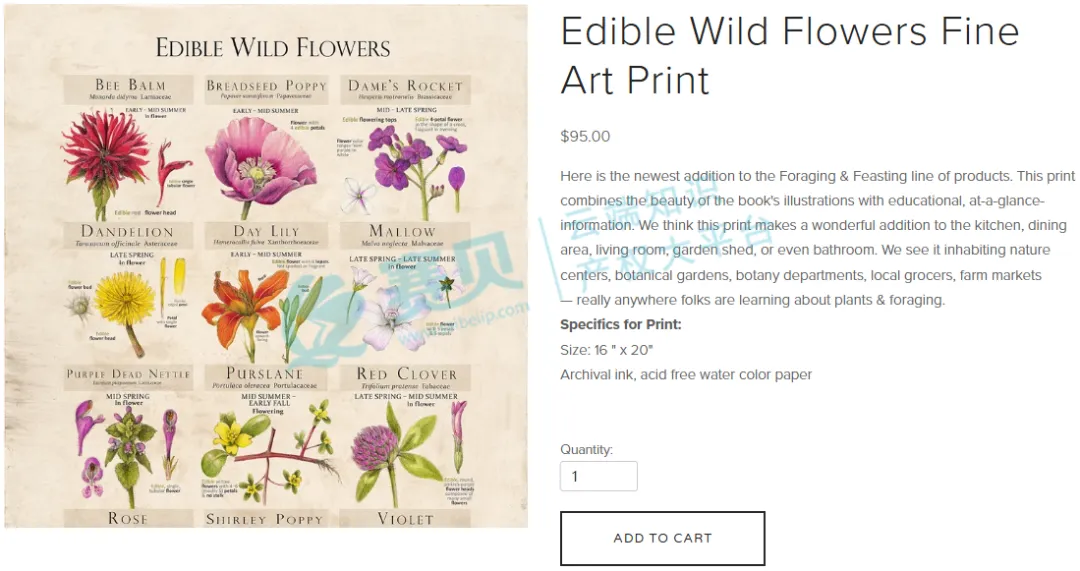 Botanical Arts Press LLC,是由 Wendy Hollender(插画师)和 Dina Falconi 联合成立的出版公司,核心业务围绕两人合著的书籍《Foraging & Feasting》(《觅食与盛宴》)及相关衍生产品展开。从2009 年开始筹备书籍,到 2013 年 7 月正式出版前,就已预售近 3000 册,可见其市场认可度。后续还推出了印有书中插画的头巾、贺卡、海报、版画等衍生产品,所有产品都结合 “植物美学+科普信息”,比如标注野花的食用部位、生长季节等,主打自然教育与家居装饰场景.