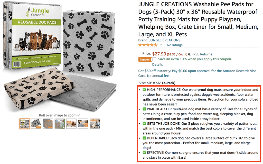 卖家朋友可以在产品陈述的5个要点中,写出因为标题字数限制而又与产品高度关联的关键词。
