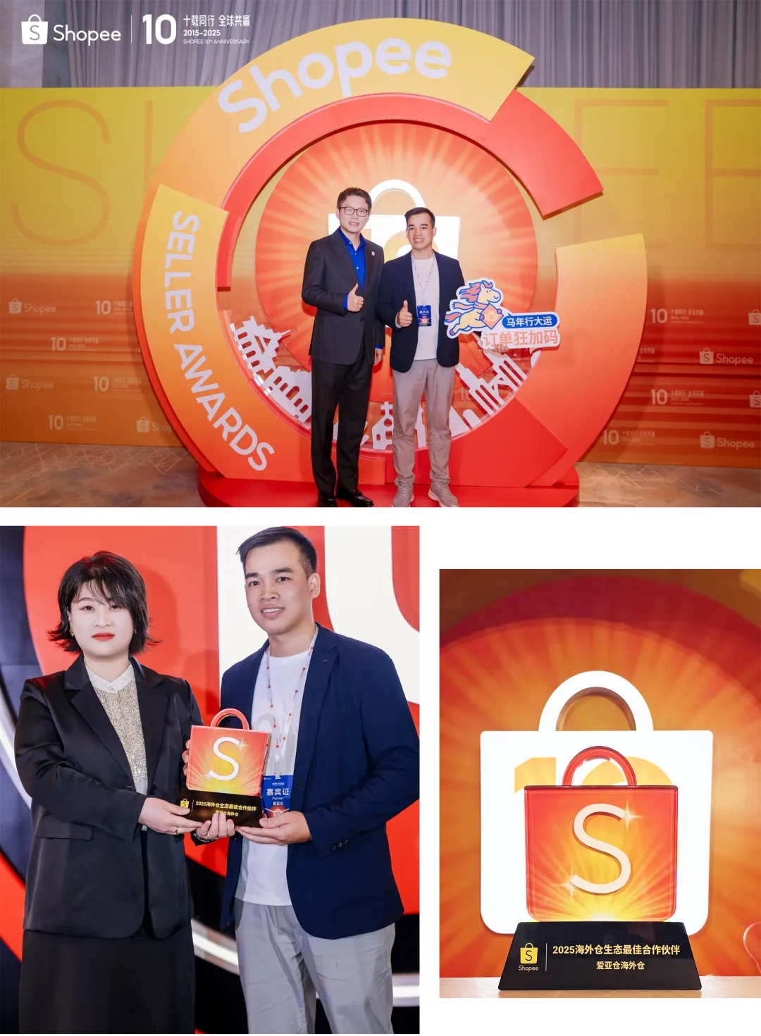1月15日,“十载同行·全球共赢——2025 Shopee Seller Awards”在深圳盛大开幕。盛典上,爱亚仓海外仓凭借专业、高效的仓储物流服务,荣获“2025海外仓生态最佳合作伙伴”奖项。