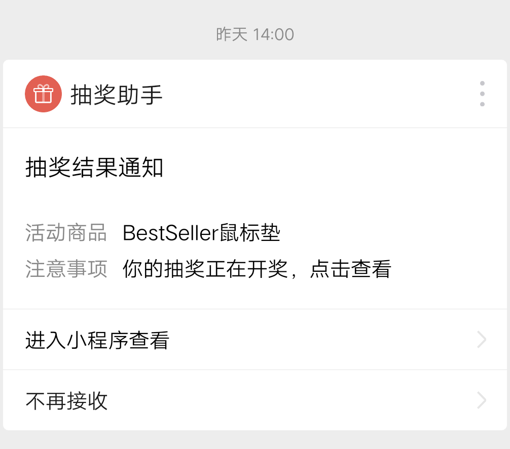 第二种方式:由于我们是用抽奖小程序,抽奖结果可微信搜索:服务通知